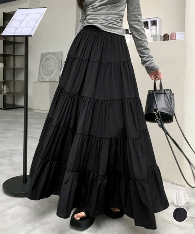 ティアードスカート 韓国風ロングスカート
