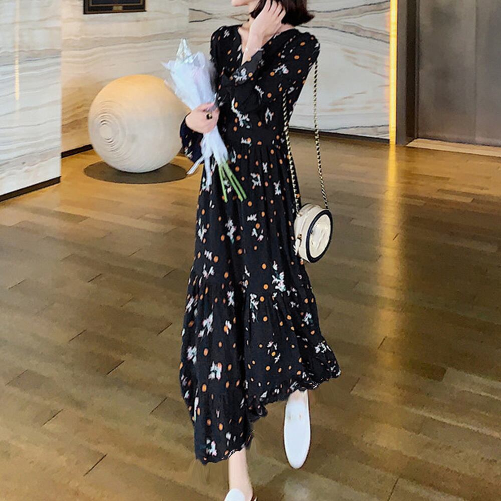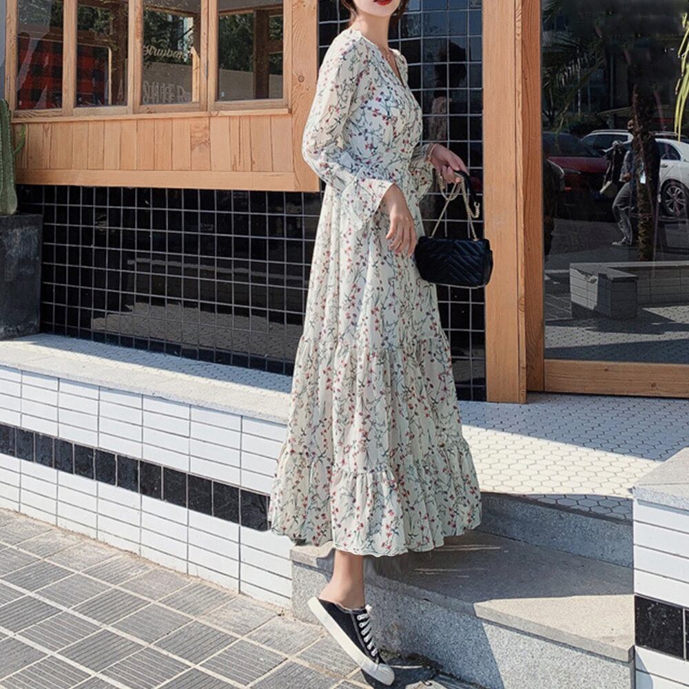 爽やかな花柄長袖ロングワンピースが新登場