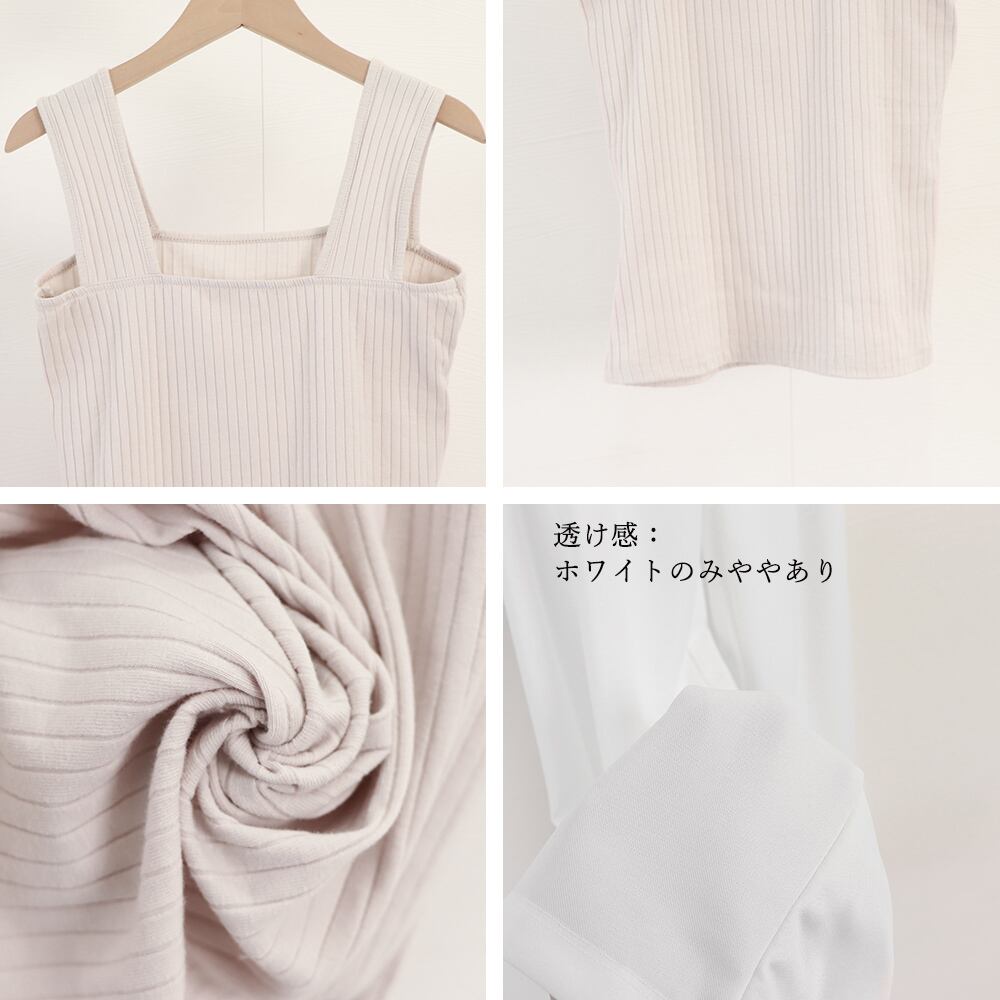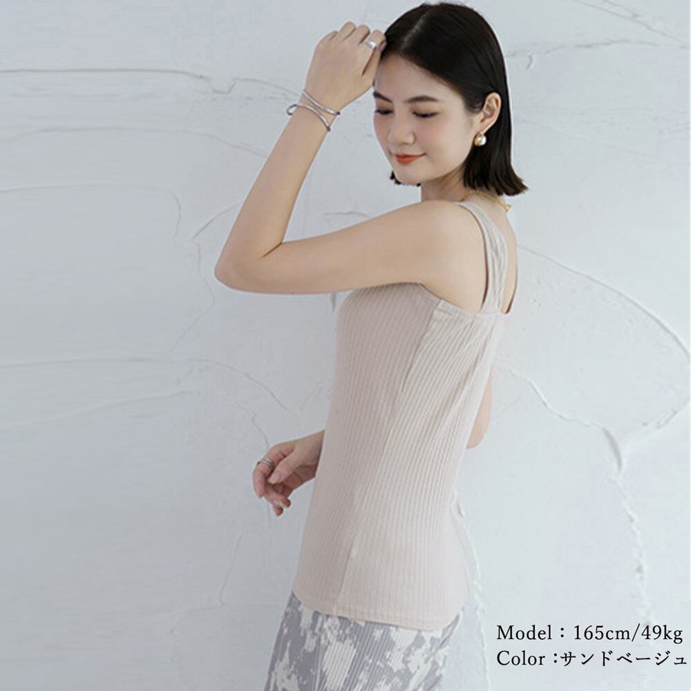 肩紐部分が下着の紐をすっぽり覆えるように太く作られたリブタンクトップ