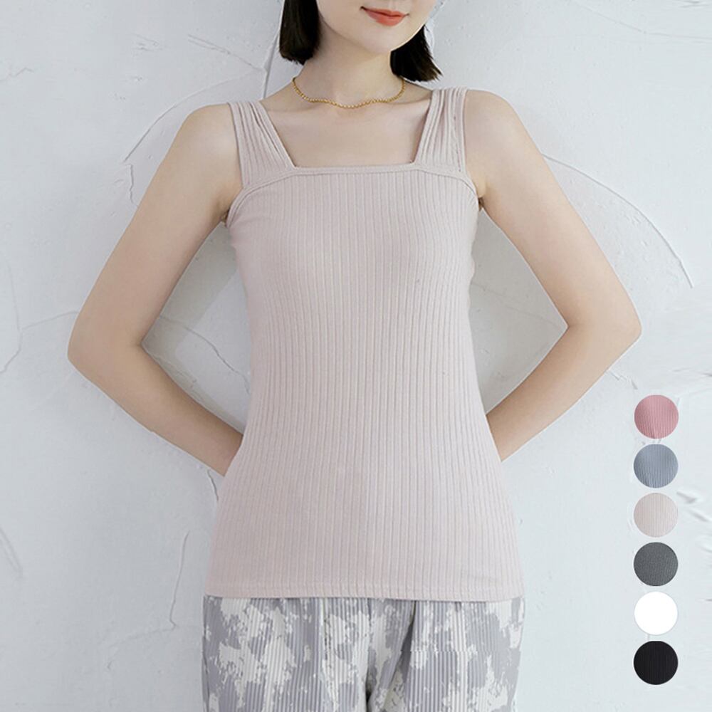 レディース スクエアネック キャミソール シンプル おしゃれ下着 チラ見え防止 ノースリーブ インナーウェア 重ね着6色
