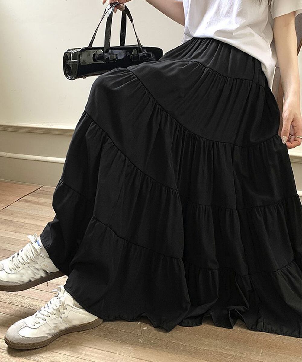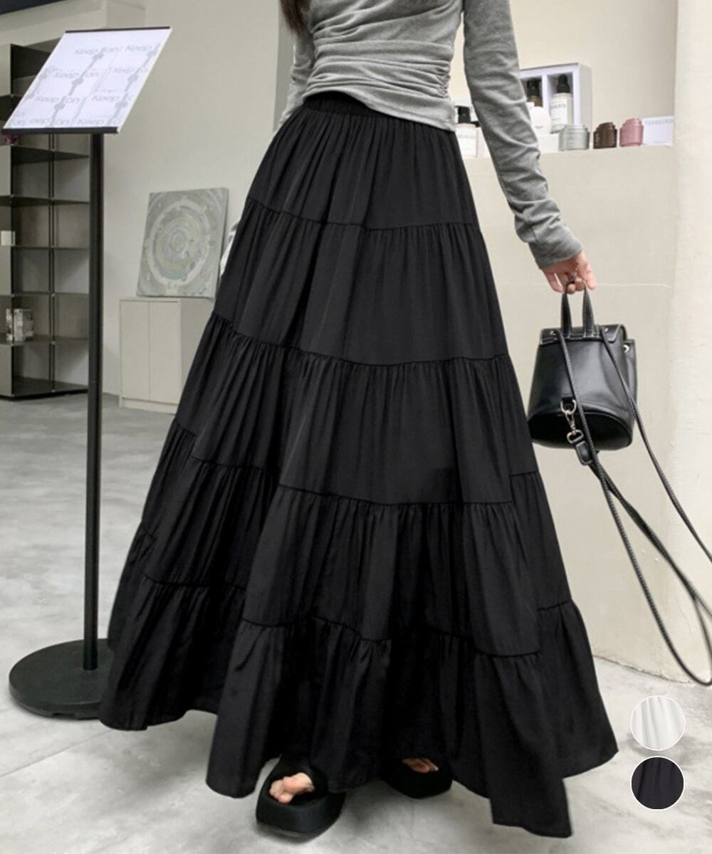 立体感のある5段ティアードデザインが、どんなスタイルにも馴染む美しいシルエットを演出。