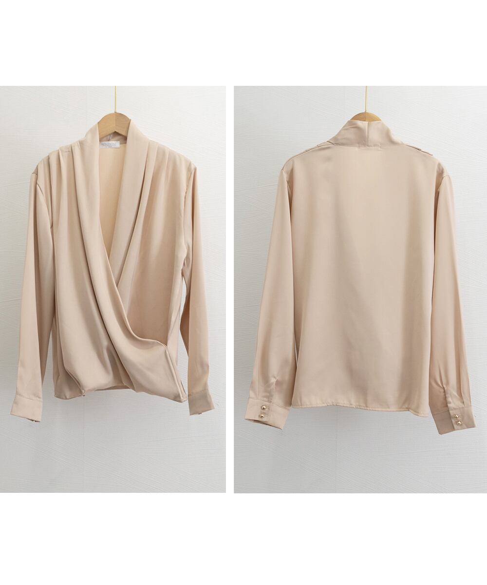 エレガントで洗練されたデザインのシルク風シャツブラウス
