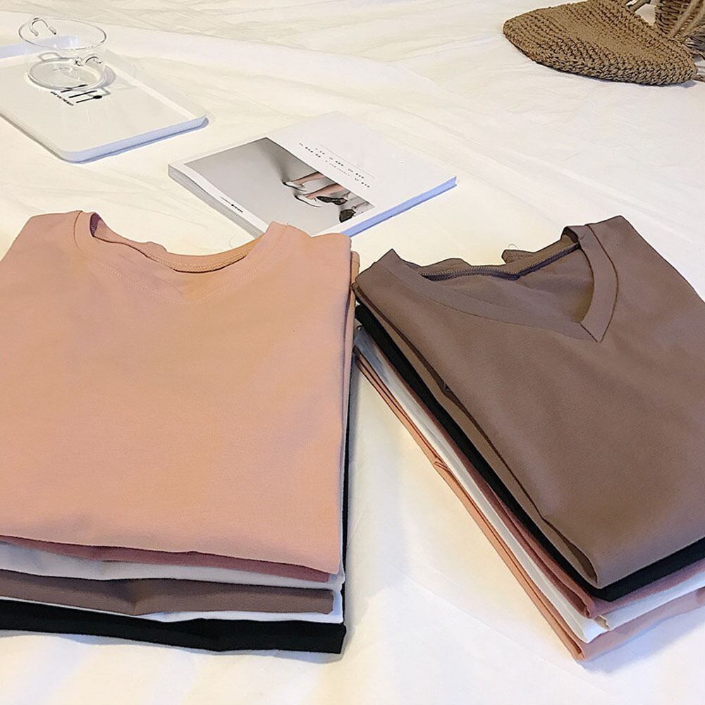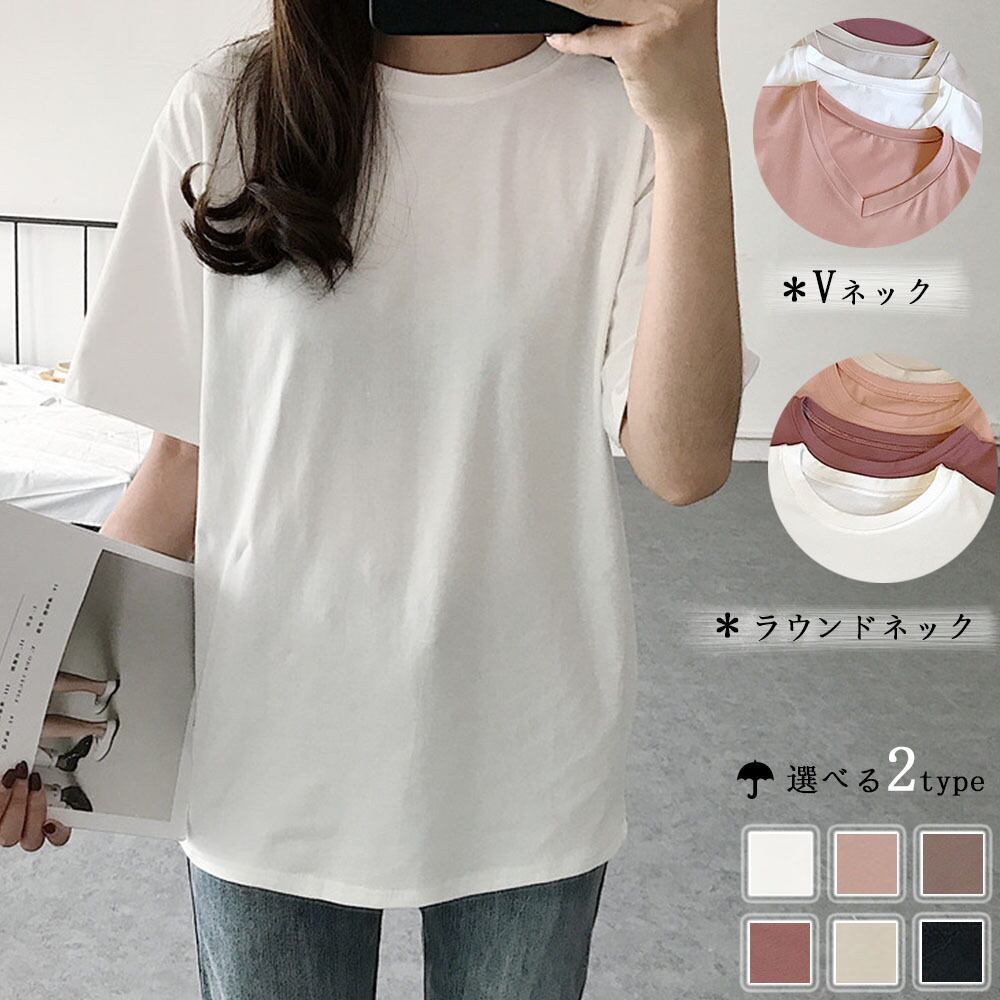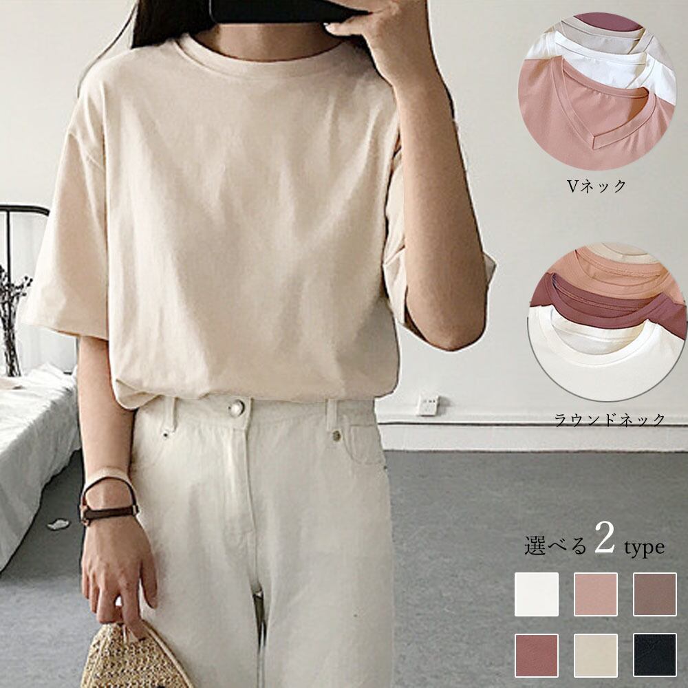 ラウンドネックとVネックの2パターンから選べるシンプルtシャツ
