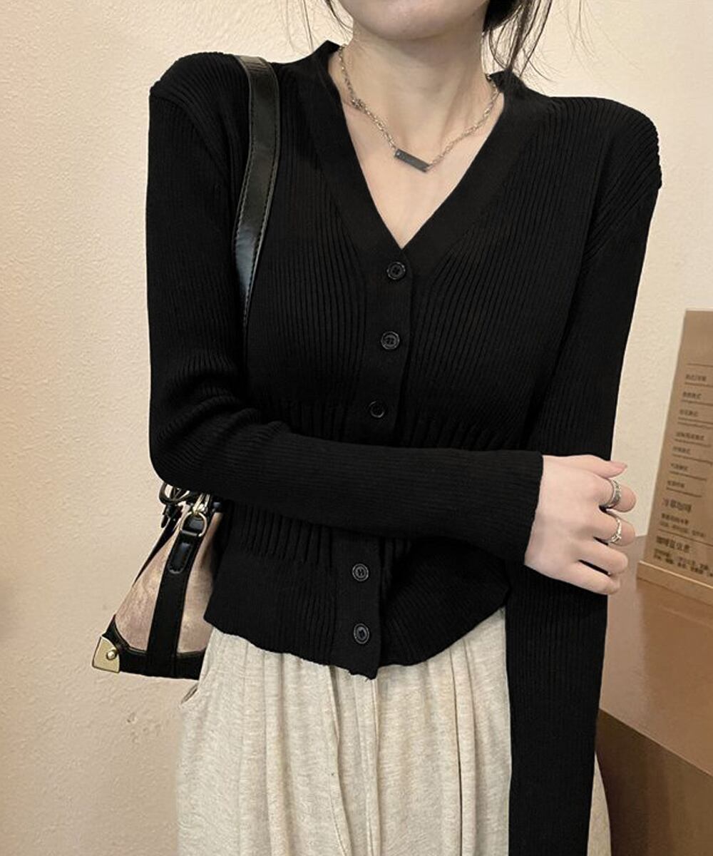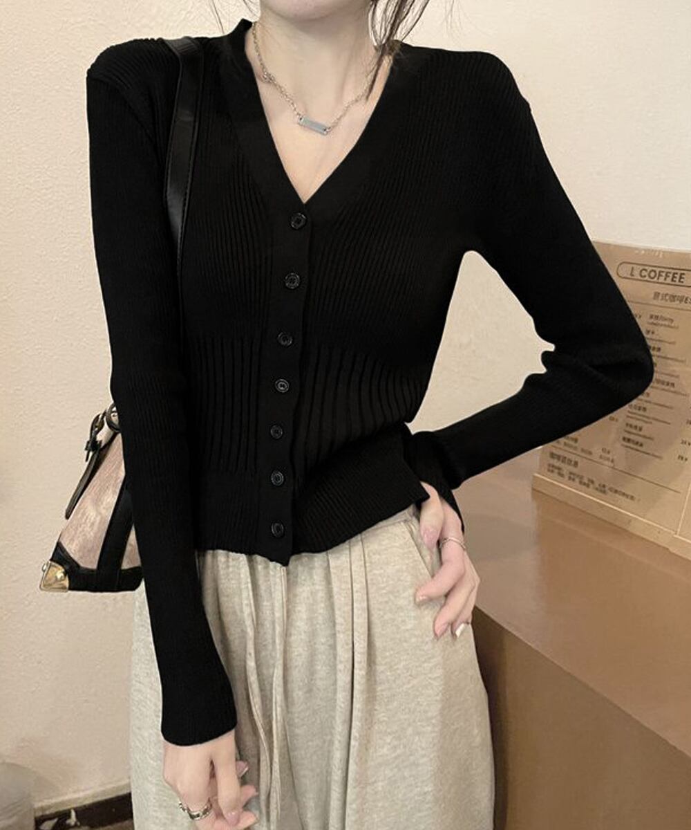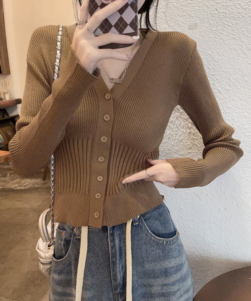 羽織としても使え、ボタンを閉じればトップスにもなるニットカーディガンです