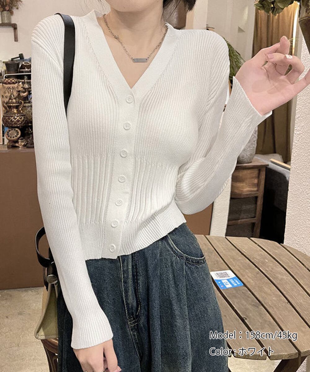 着やせニットカーデ リブニット 前開き 大人 ニットウェア