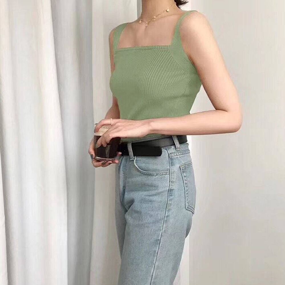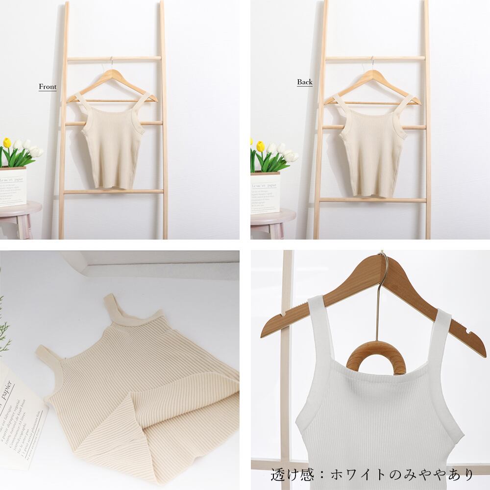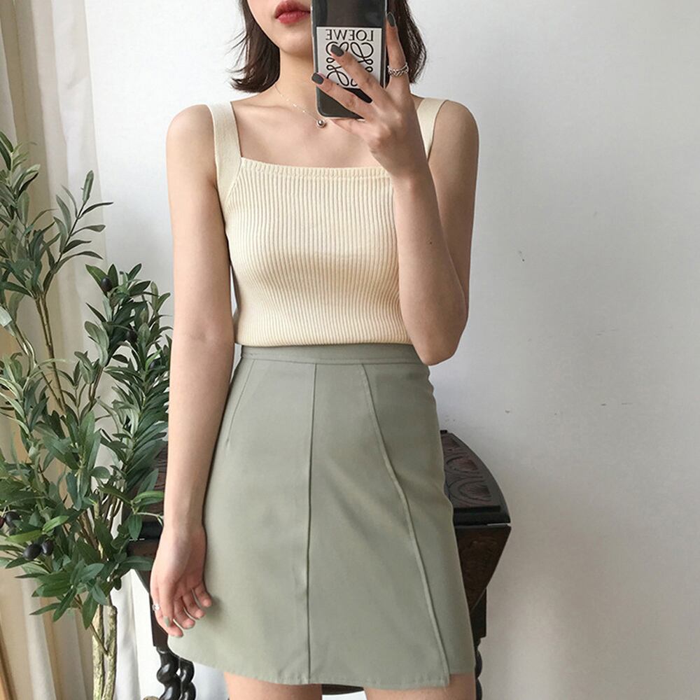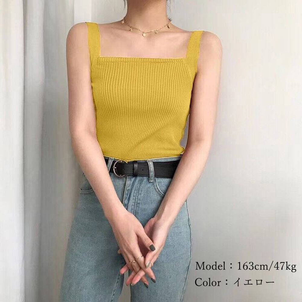 涼しくて着回ししやすいスクエアネックリブニットタンクトップ