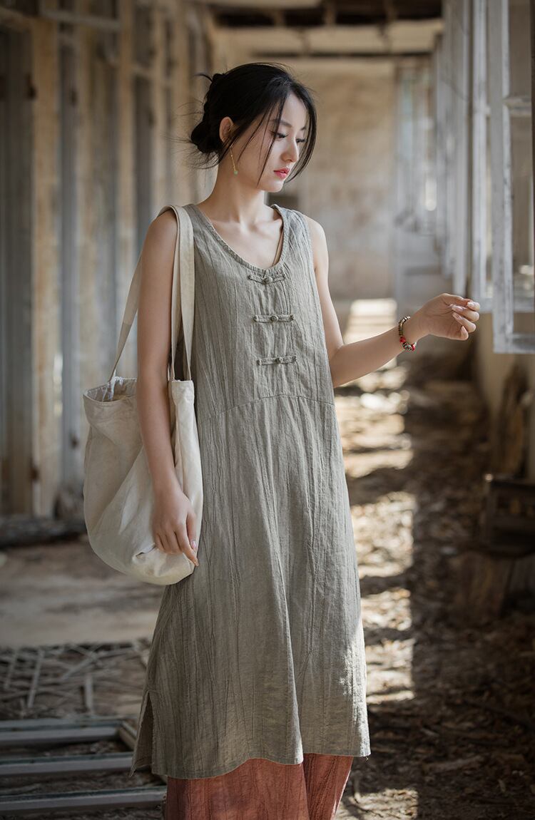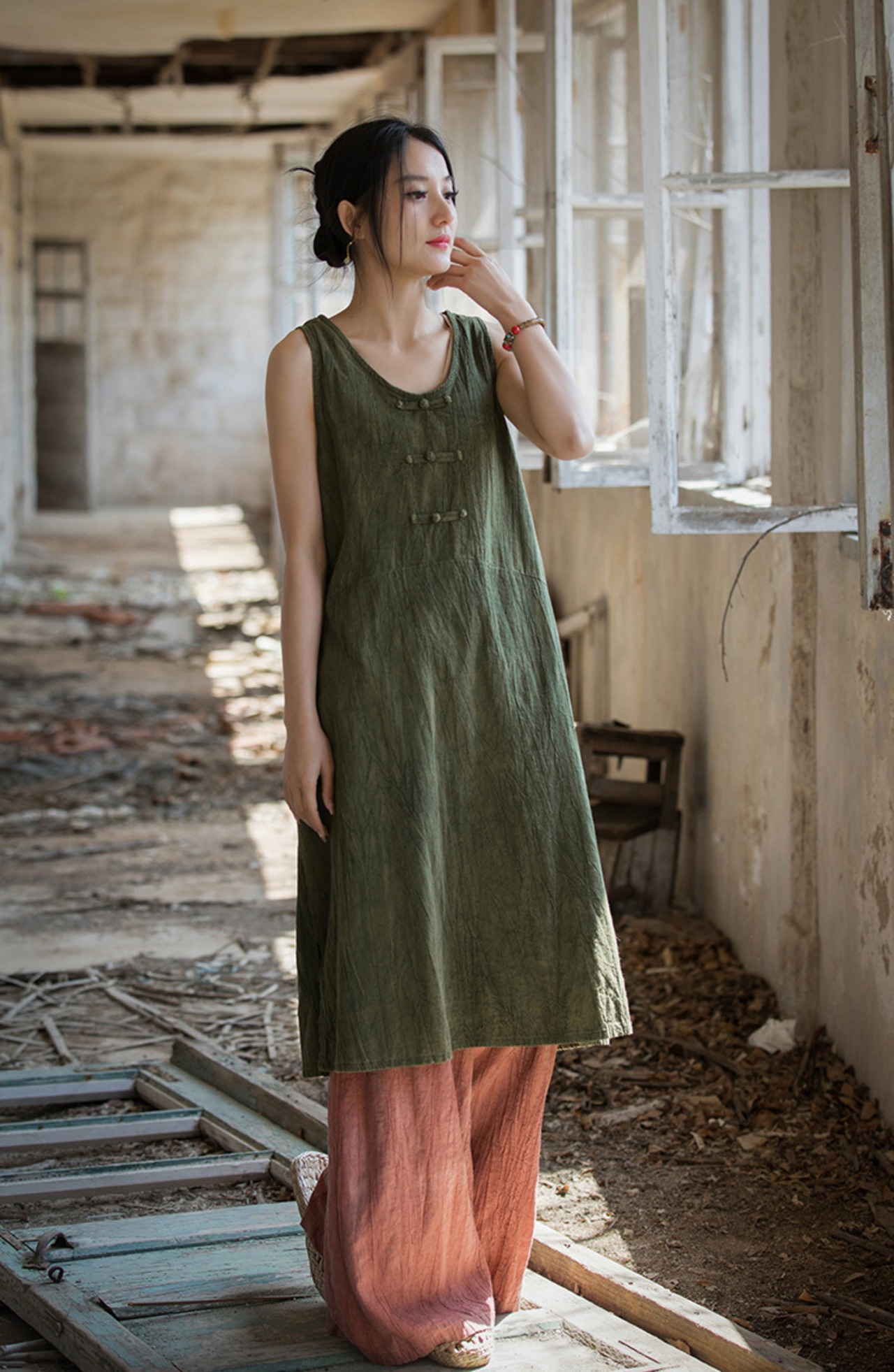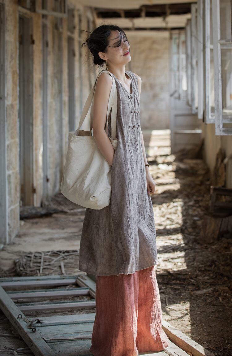 新中式ロングスカート日常旅行文芸範女性式ワンピース