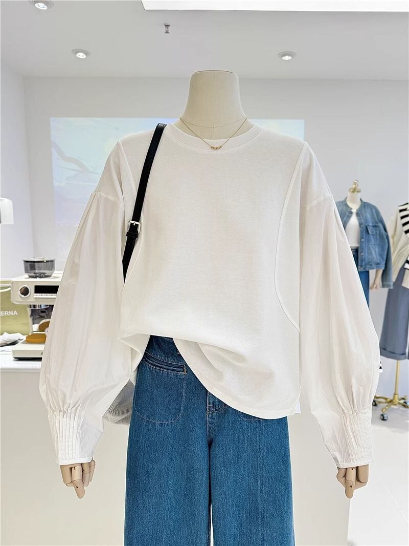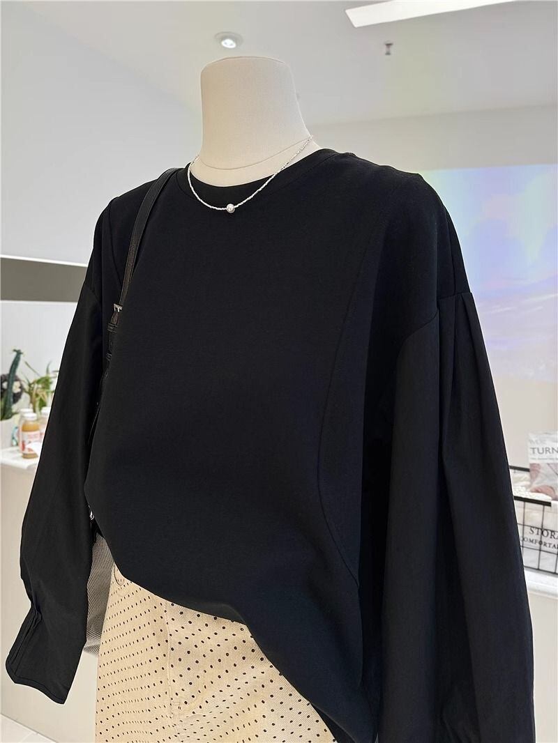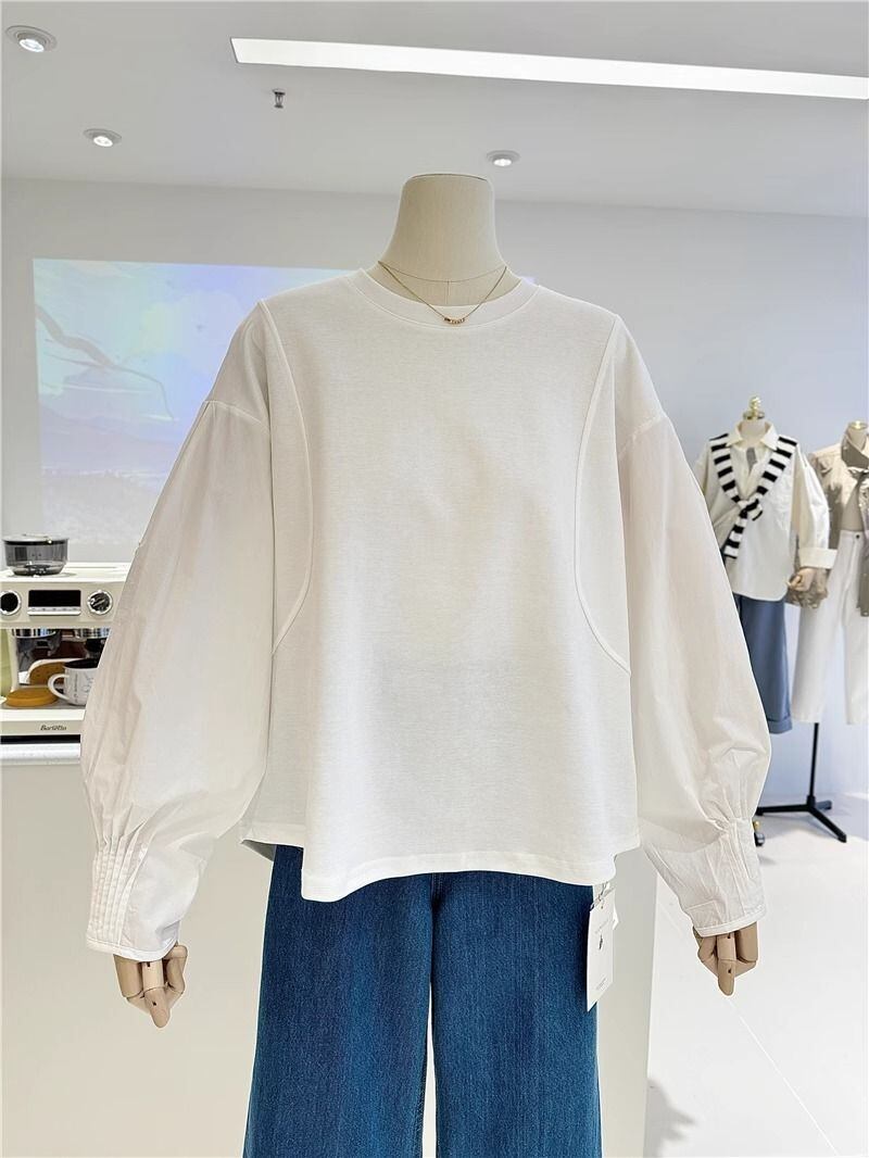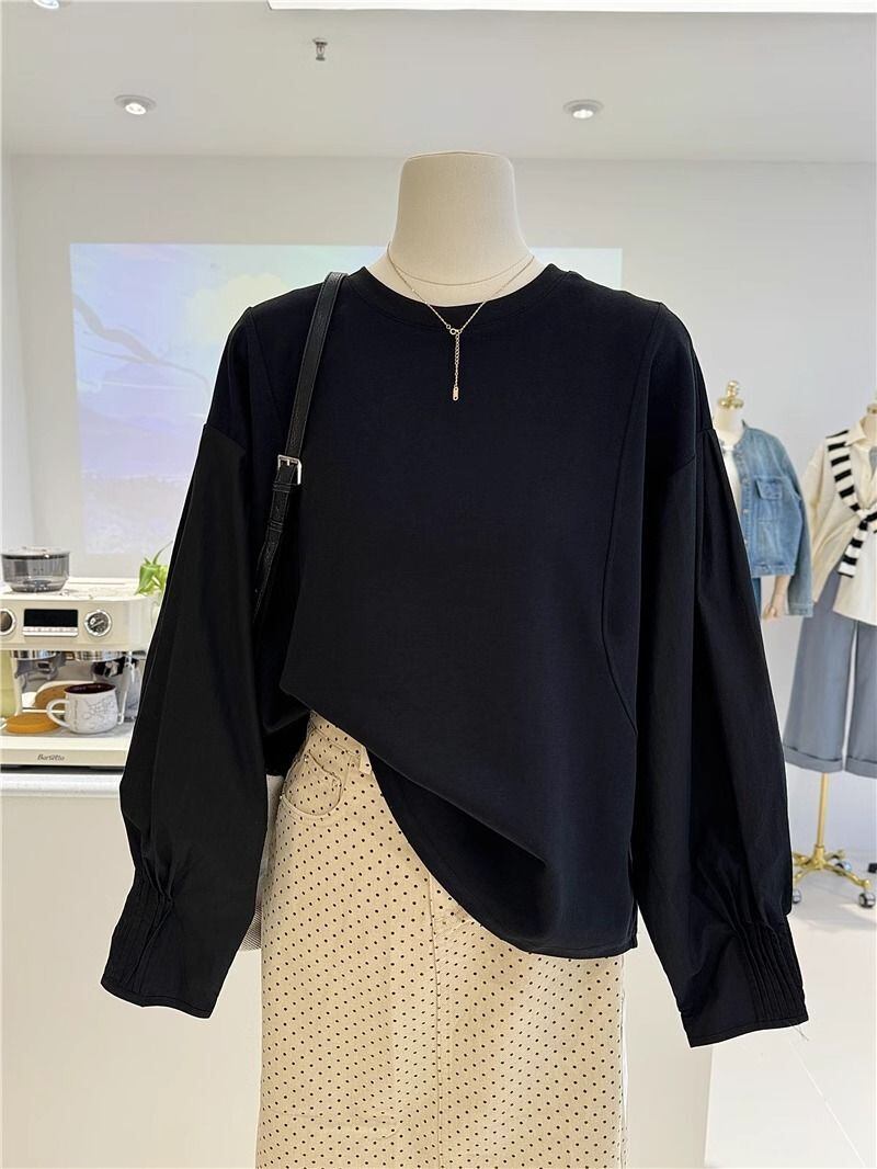 ・身頃と袖部分に異素材を使って切替デザインで大人可愛さをアップ!