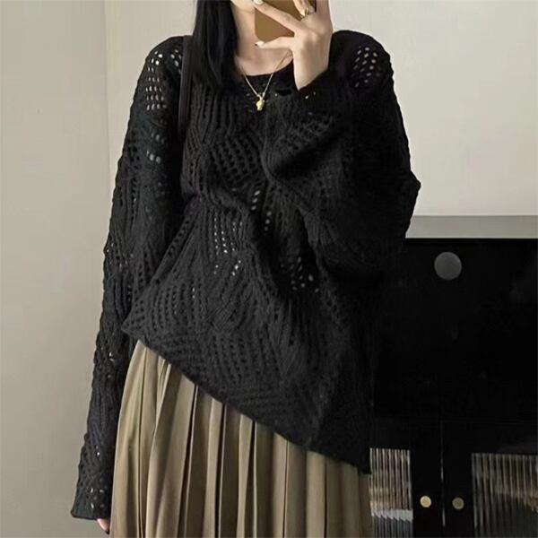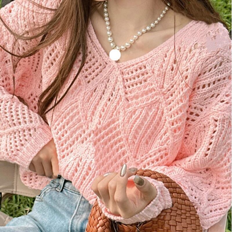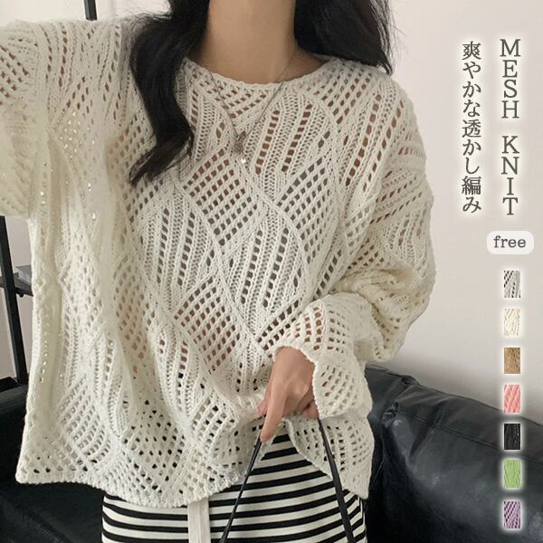 ・透け感のある爽やかな緩いシルエットの 透かし編みニットです。 ・タンクトップやキャミソールなどに重ねて着るだけで、今年っぽいレイヤードスタイルを楽しめます。