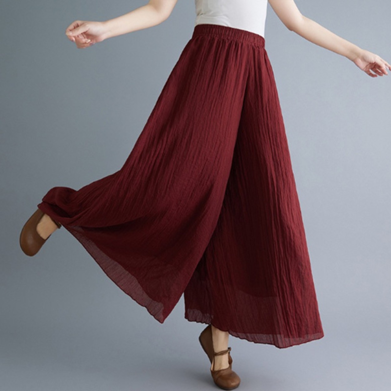 ・軽量で涼しい麻混ワイドパンツです。