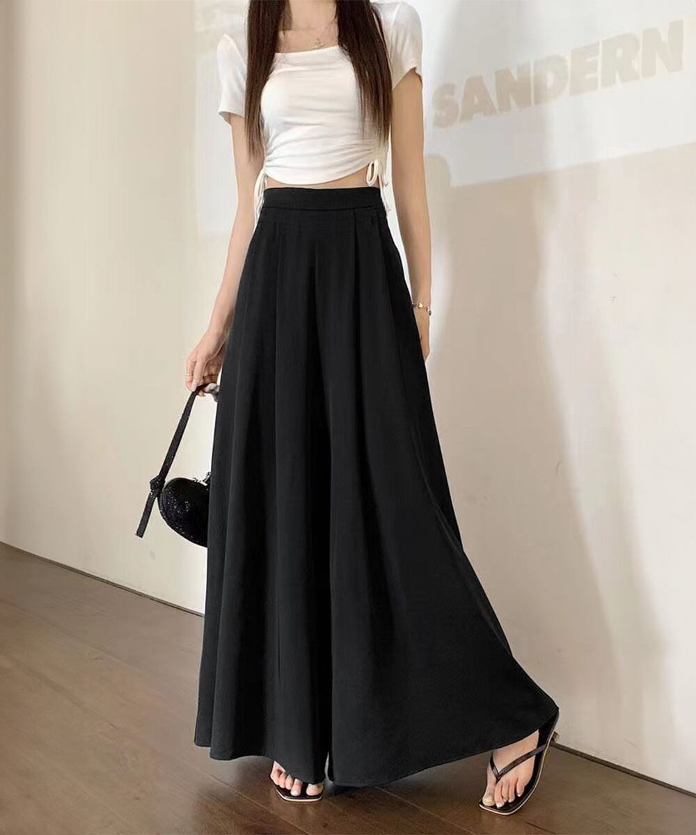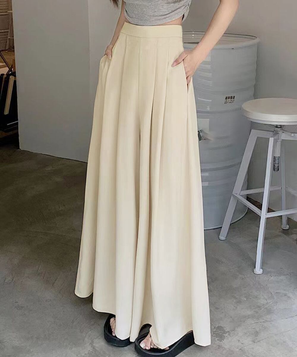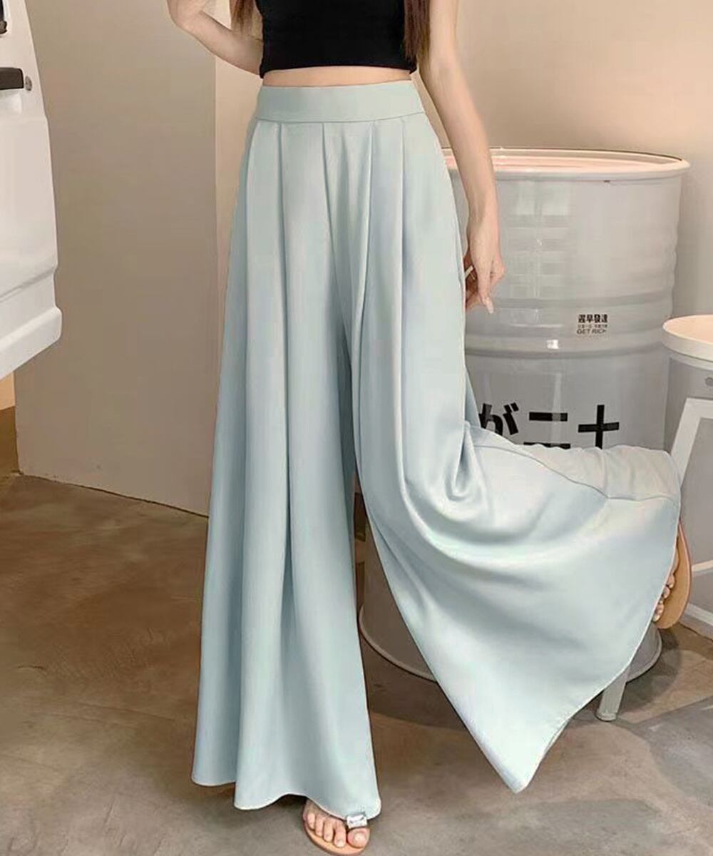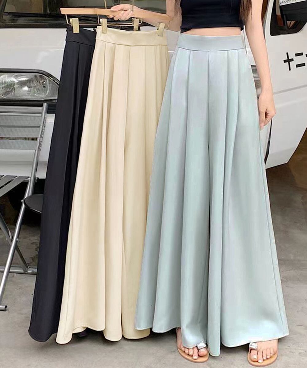 とろみパンツ スカンツ春夏 きれいめ ハイウエストフレアパンツ 無地 ロングパンツ 涼しげ 体型カバー ボトムス 韓国風