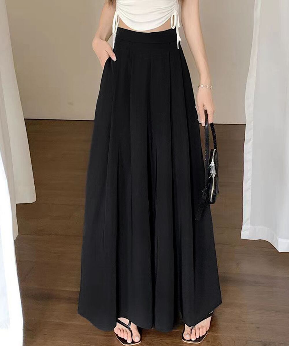 ドレープパンツ 黒 スカーチョゆったり 薄手イージーパンツ