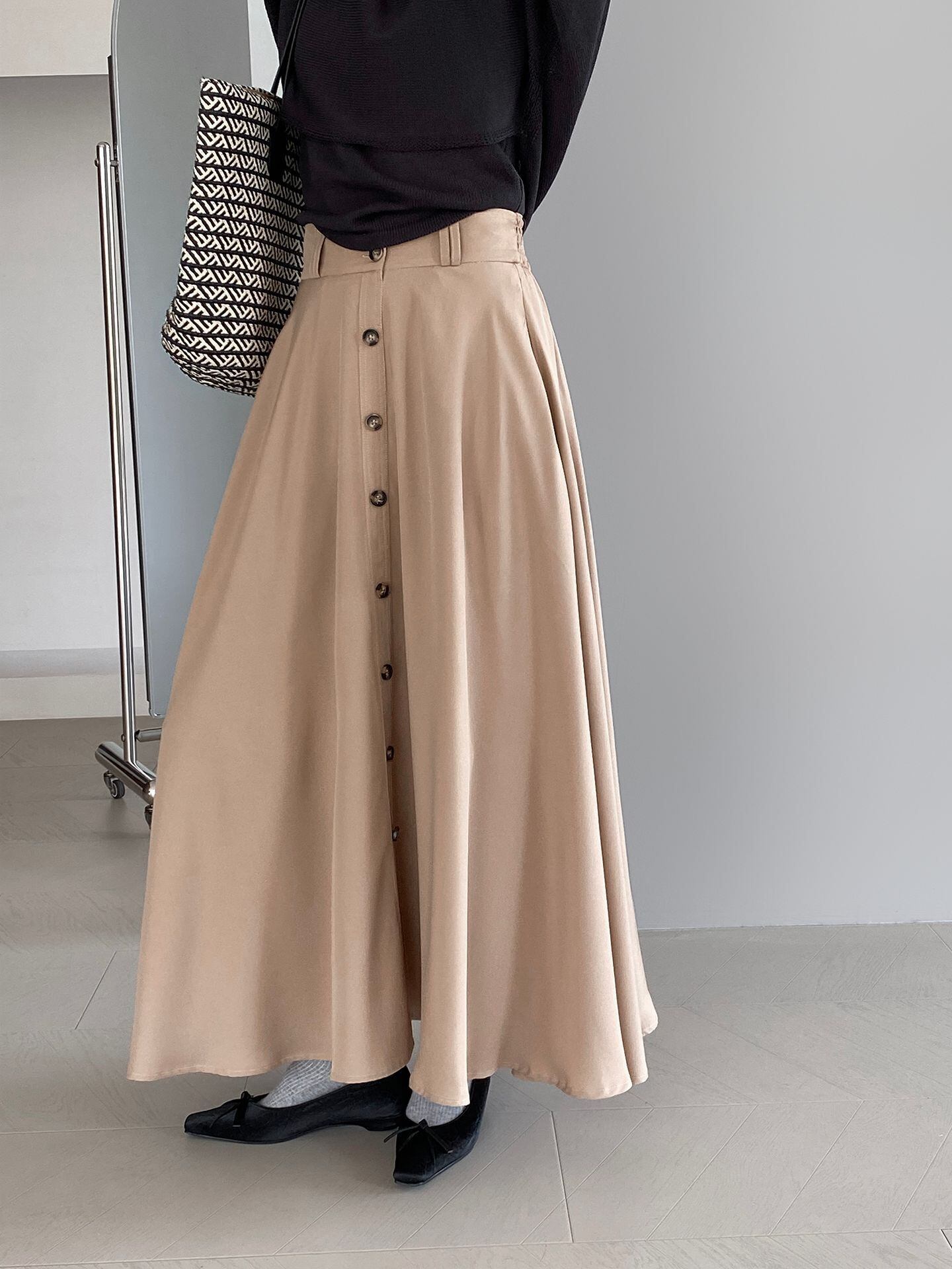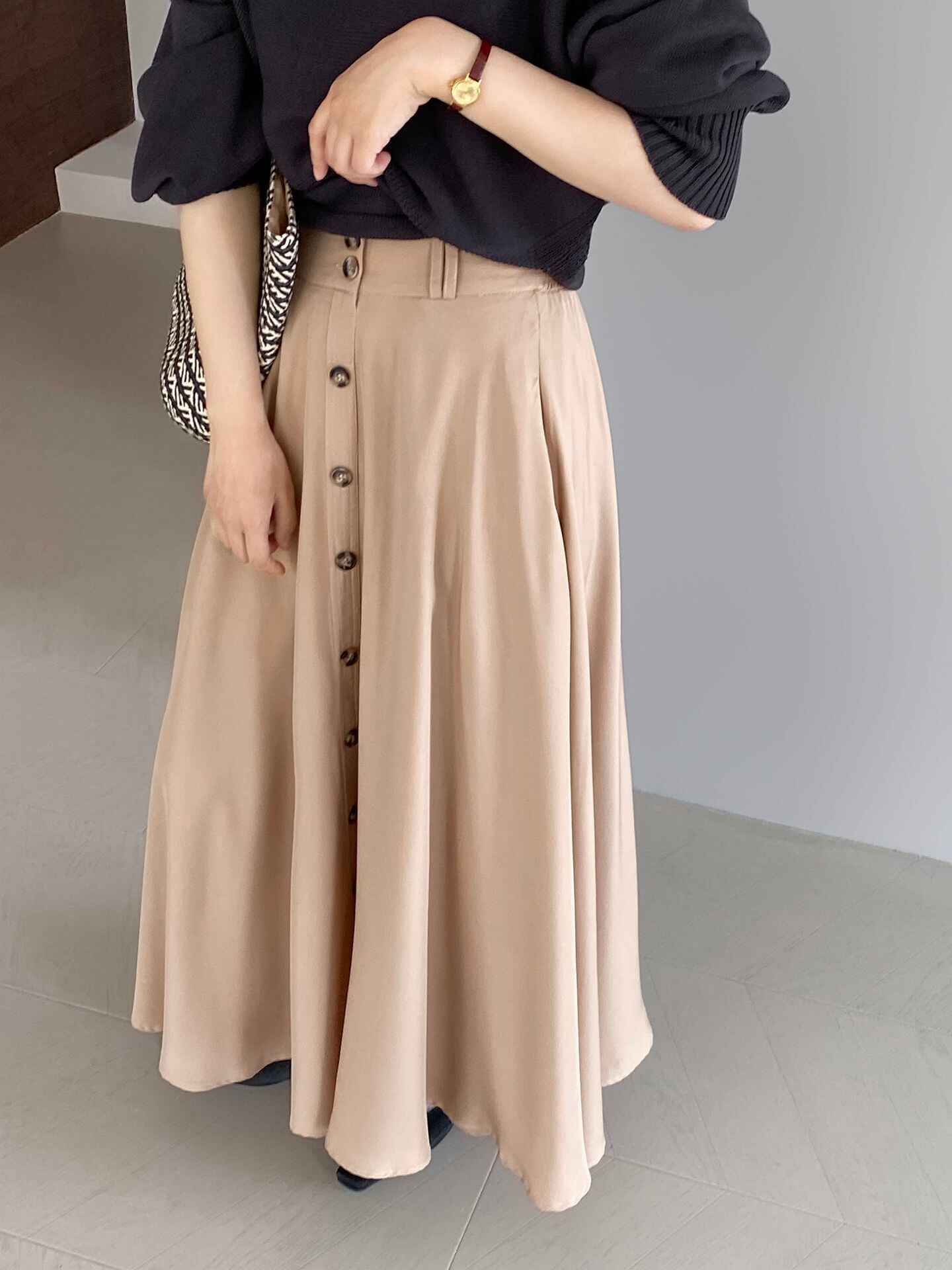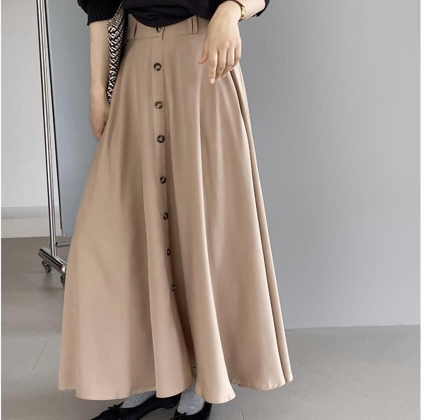 レディース ボトムス ロングスカート ハイウエスト 2色 シンプル 韓国風 2025春夏新作