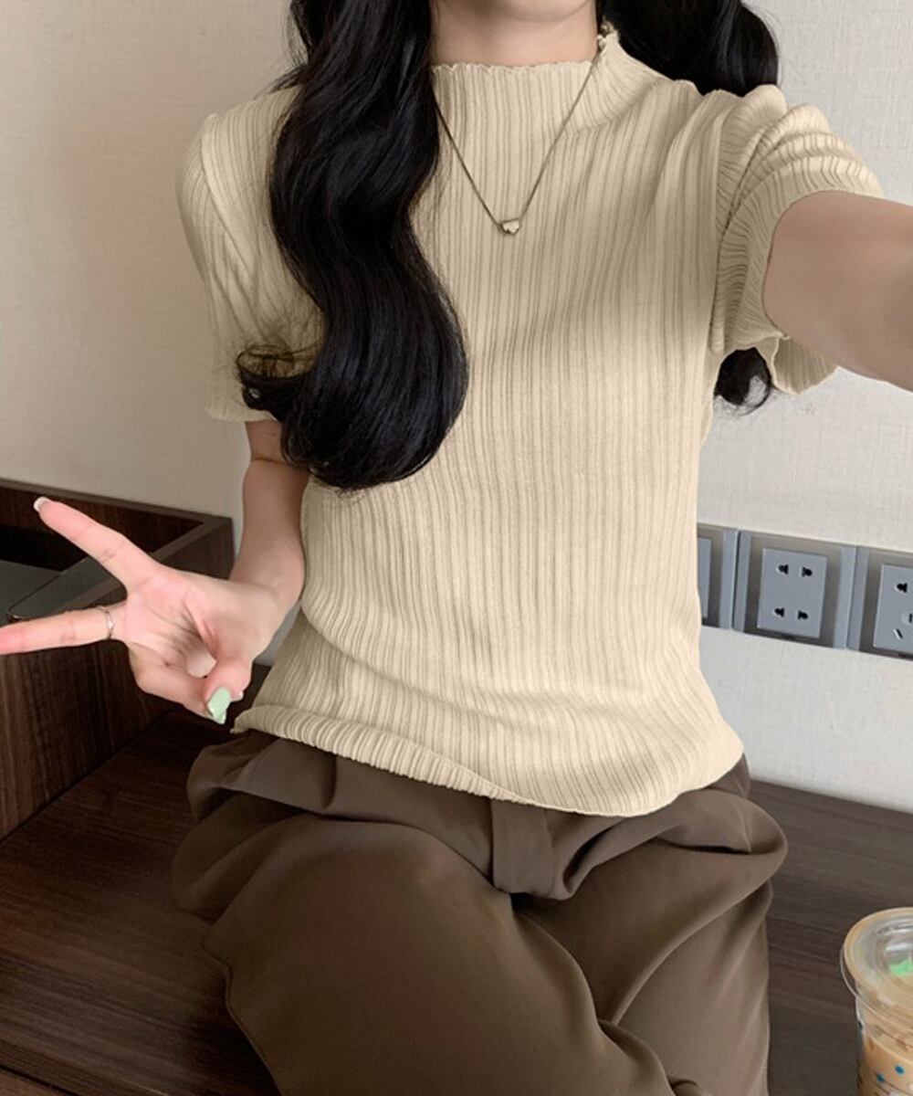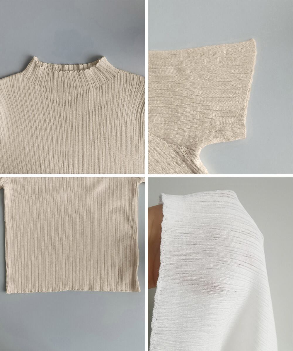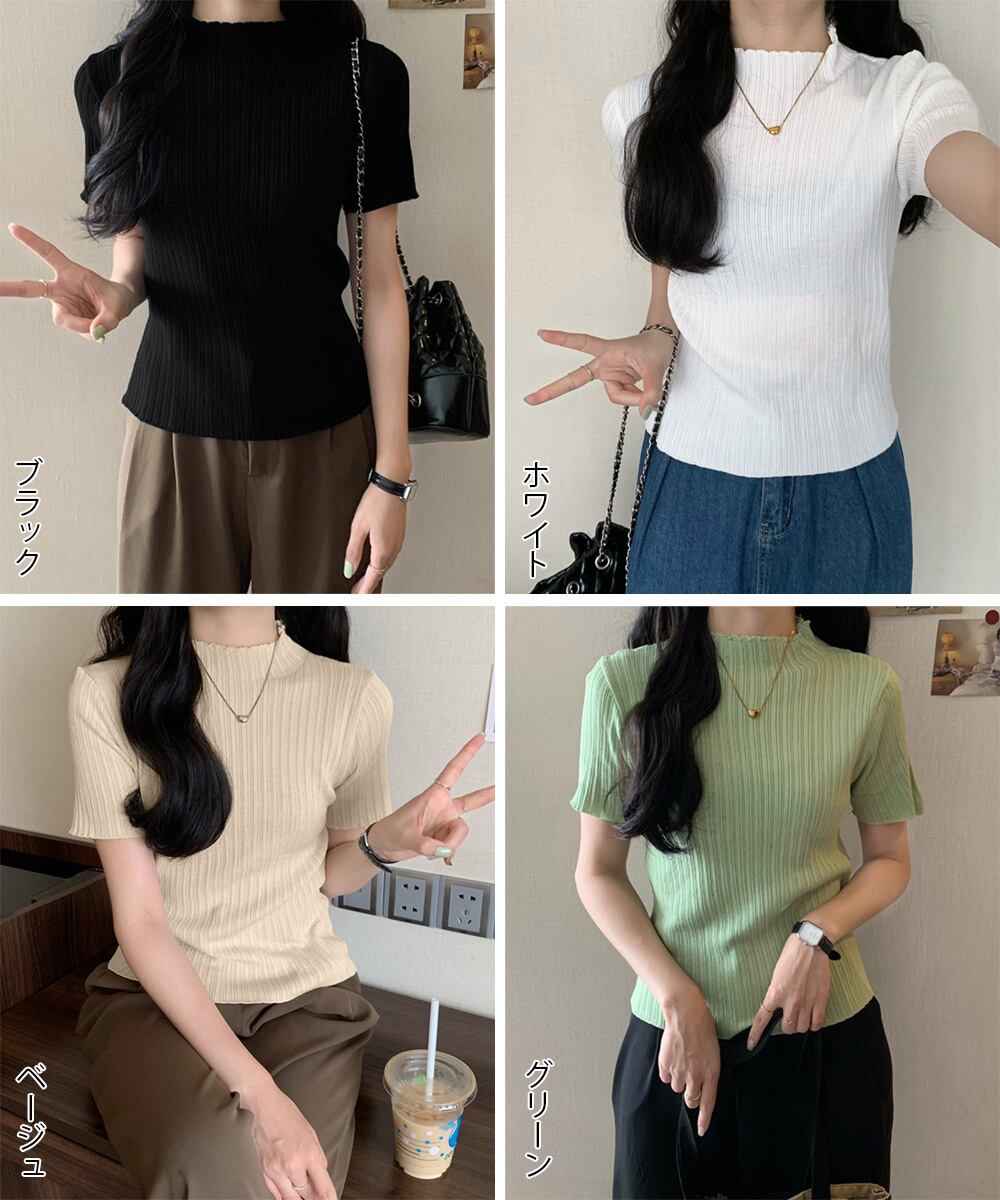 1枚でも重ね着にも着まわし上手な半袖リブニットトップス