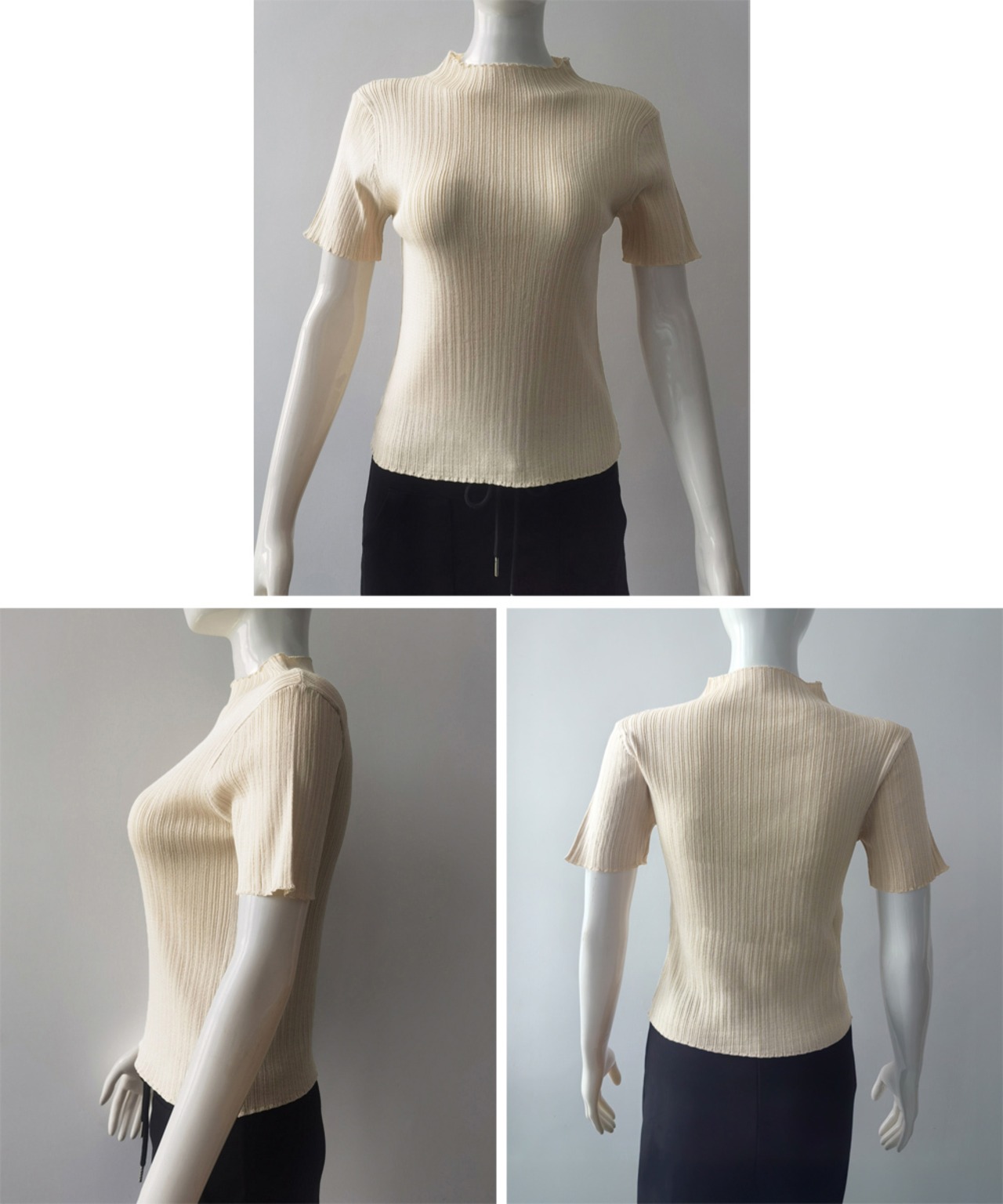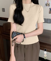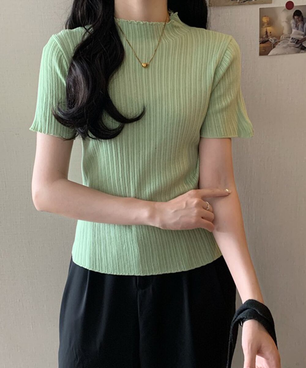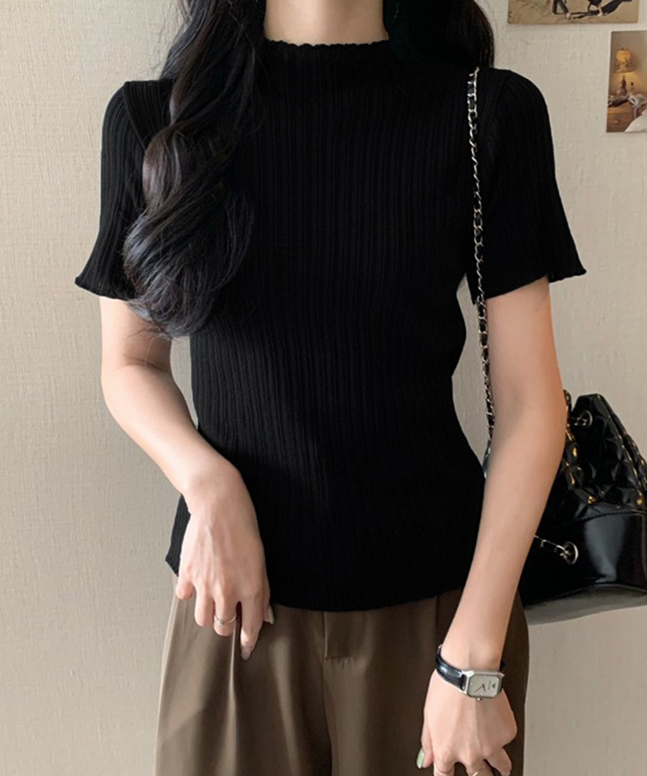 1枚でも重ね着にも着まわし上手な半袖リブニットトップス
