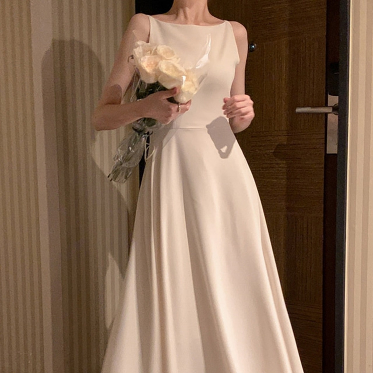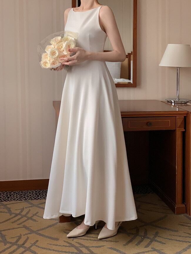 シンプルなロング丈ワンピ。これ一着でコーデ完成です。