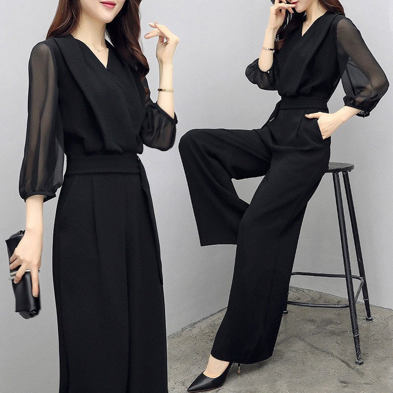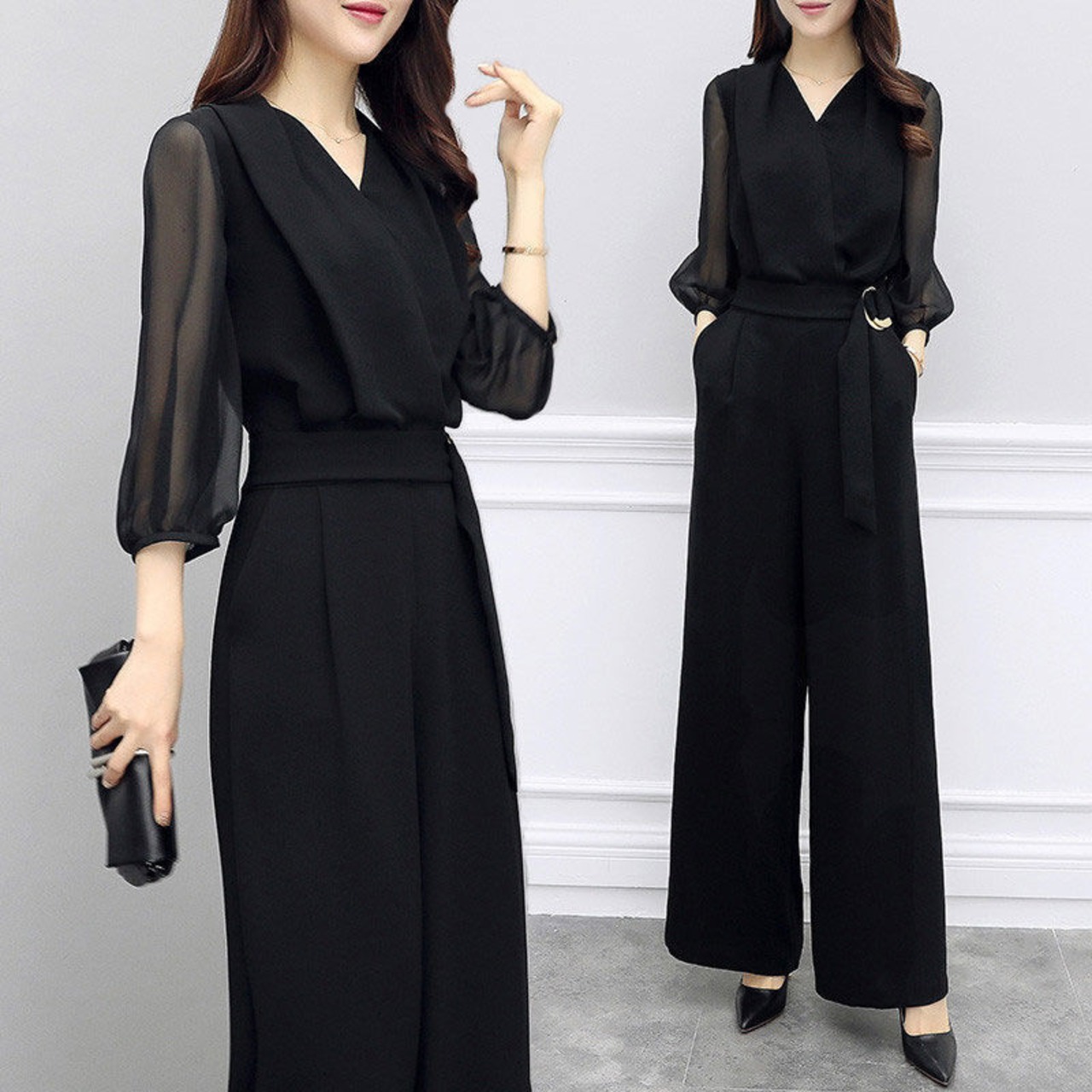 綺麗なシルエットのオールインワンワイドパンツドレスです。