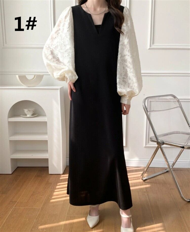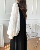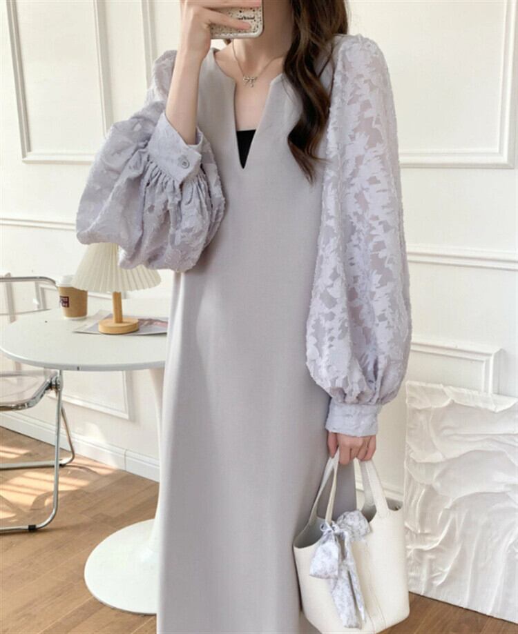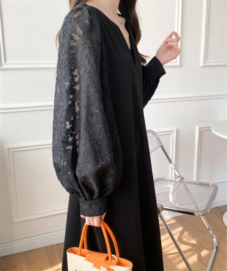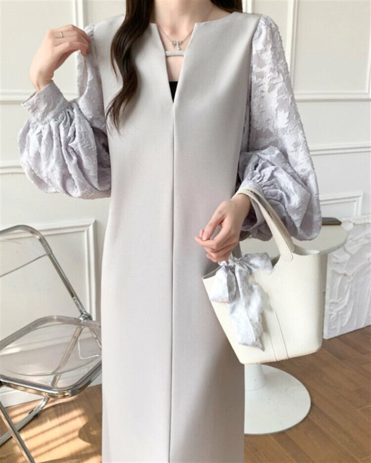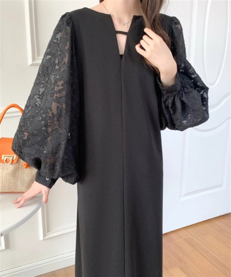 異素材を使用したおしゃれなロング丈ワンピース。