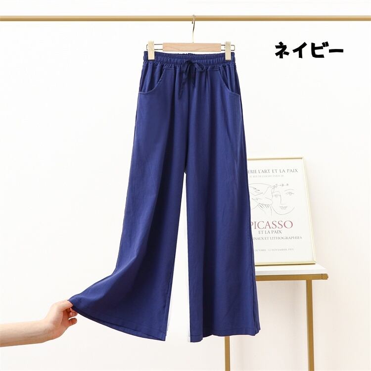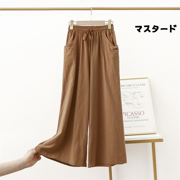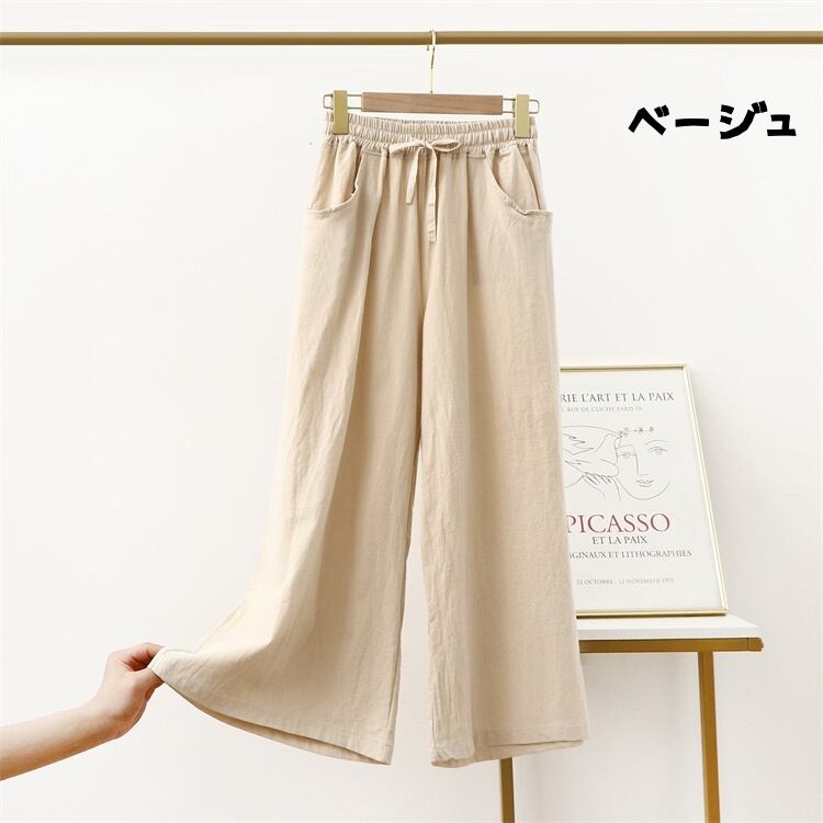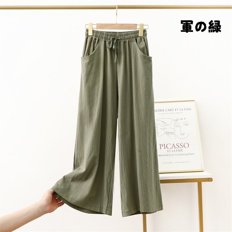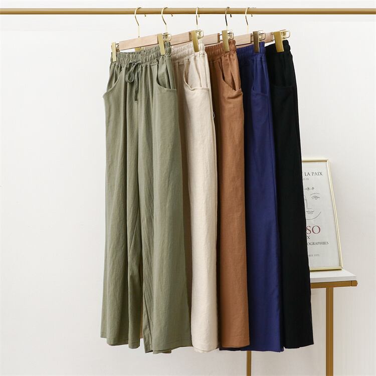 綿麻ワイドパンツ ビッグサイズ ストレートレッグ スリム効果 ゆったりカジュアルロングパンツ