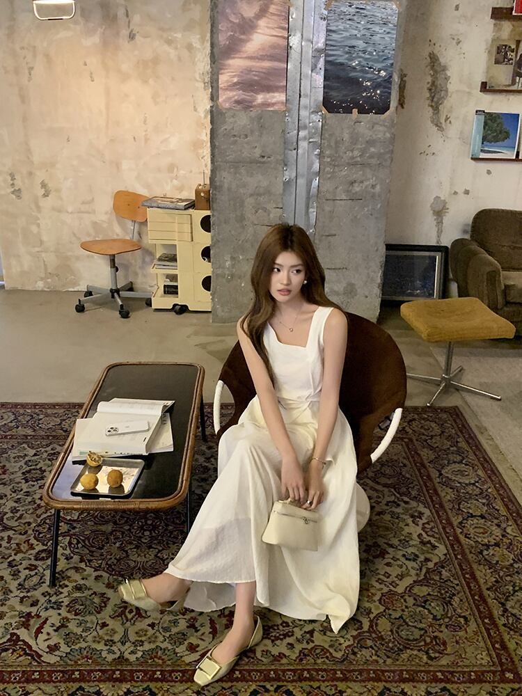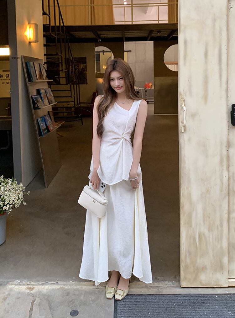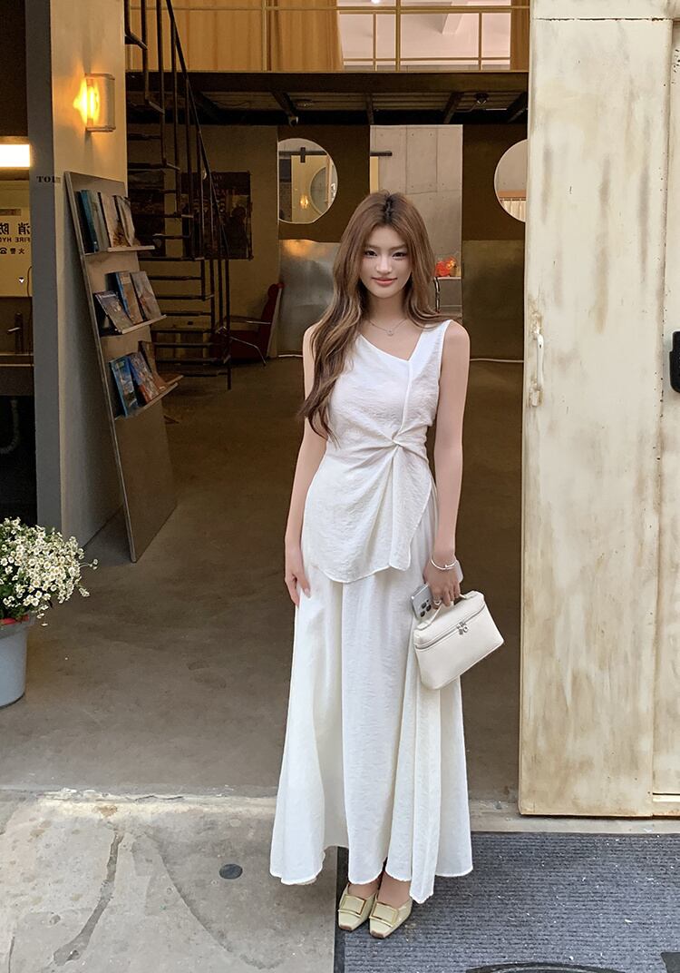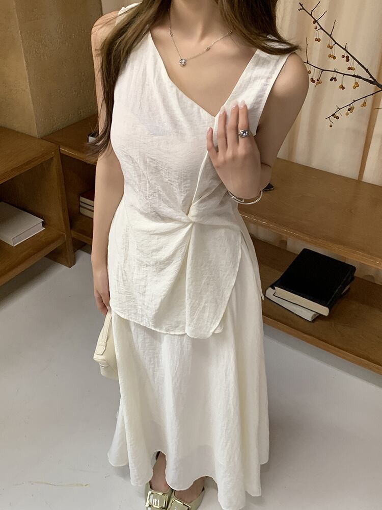 オフィスカジュアル 2025春夏 ノースリーブトップス+Aラインロングスカート